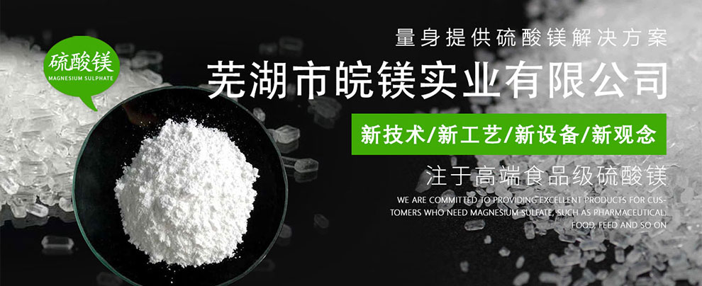 中国硫酸镁行业创新型企业——芜湖市皖镁实业有限公司,主要定位于硫酸镁行业的市场,潜心为国内外的制药、食品、饲料、试剂、工业、建材等硫酸镁需求客户提供的产品和应用方案。芜湖市皖镁实业有限公司,成立于2012年地处芜湖市无为县昆山镇。企业现有占地面积56,一期建成投产厂房4800平方米(4栋),办公、后勤等用房1200平方米,厂区生活污水处理站等功能齐全。公司境内交通便捷,道路横贯东西,与铜陵长江大桥相接,距347国道2公里,庐铜铁路货运站10公里,芜湖国际集装箱港口90公里,铜陵外贸港口46公里,水路交通运输方便。依托本地丰富的水资源优势和化工行业的人才、技术优势,采用新技术、新工艺、新设备、新观念,科研开发、生产运营硫酸镁系列产品。公司专注于食品级硫酸镁产品的研制,根据不同的市场需求,工厂先后研制出十几种不同规格的硫酸镁产品。